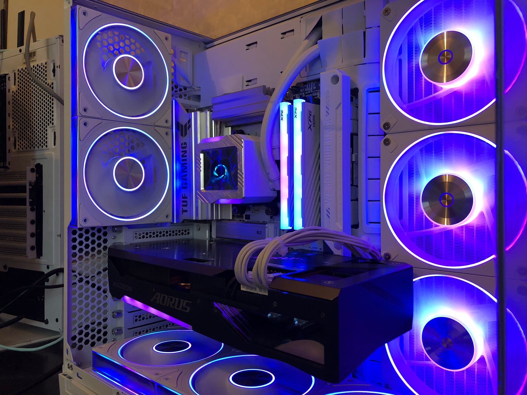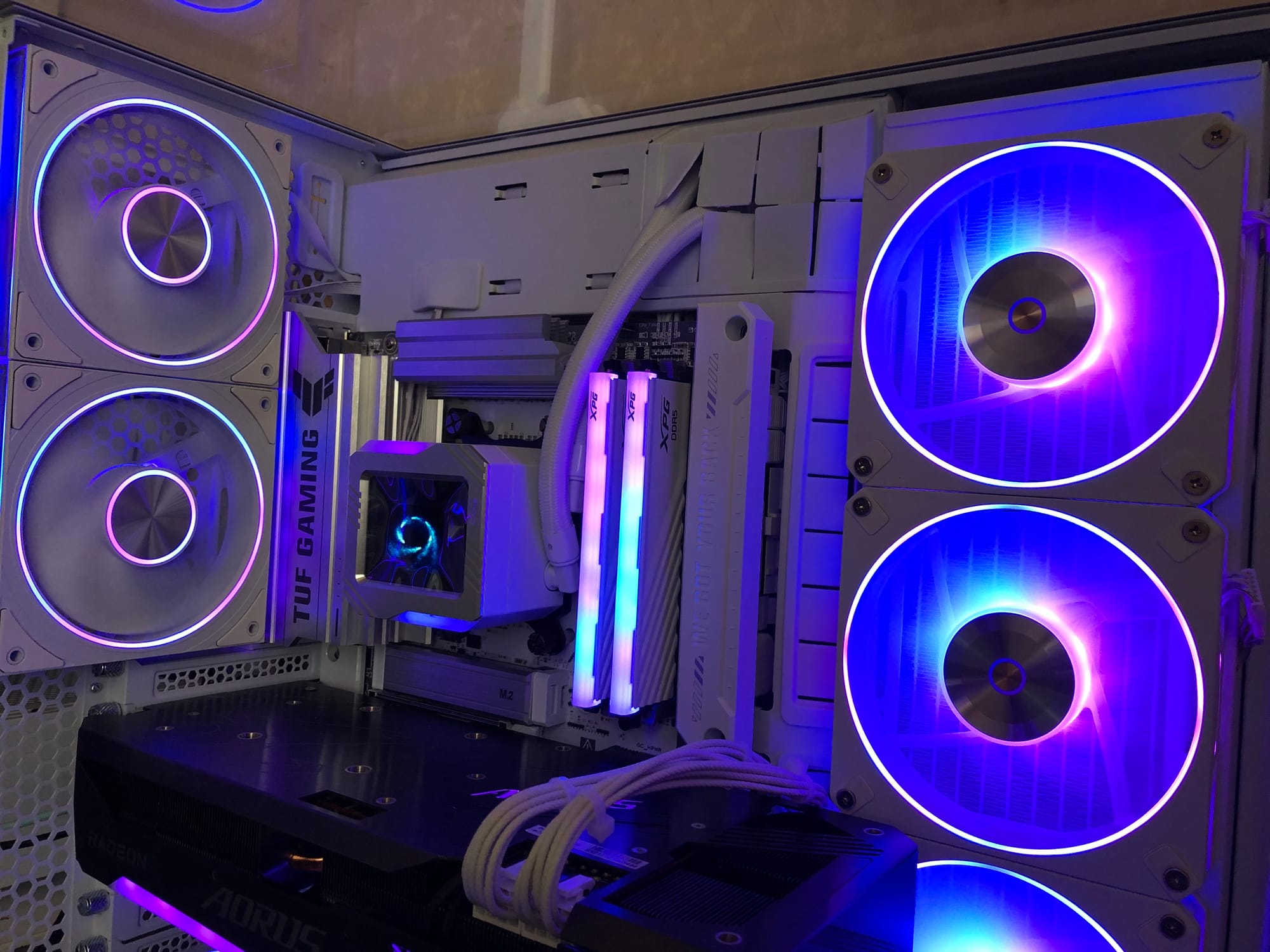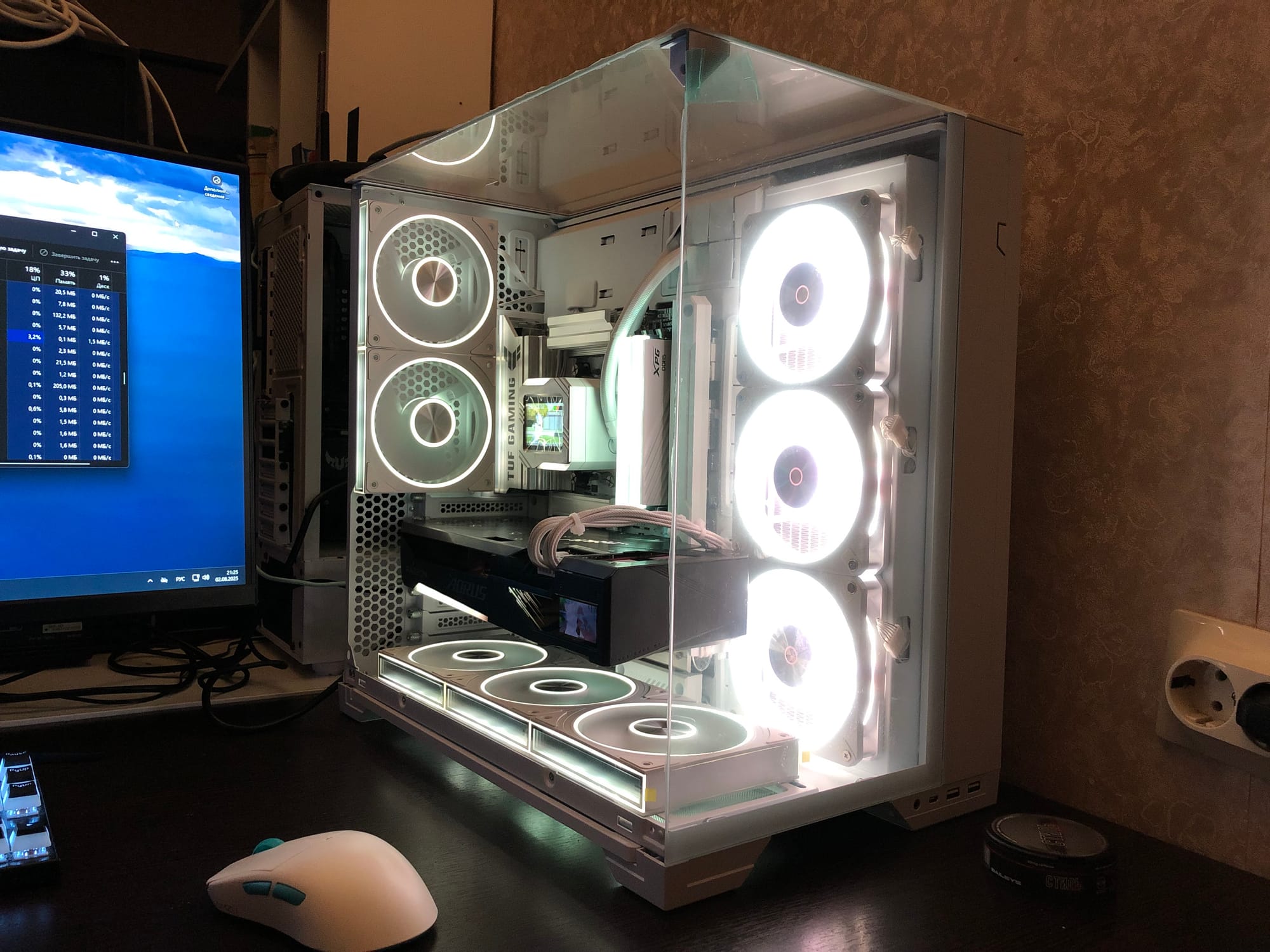 Сборка получилась эффектной и мощной. Установлен быстрый накопитель ADATA Legend 900 на 1 ТБ, настроена Windows и весь софт для управления подсветкой и дисплеями. ПК полностью готов к 2K-геймингу на ультра-настройках