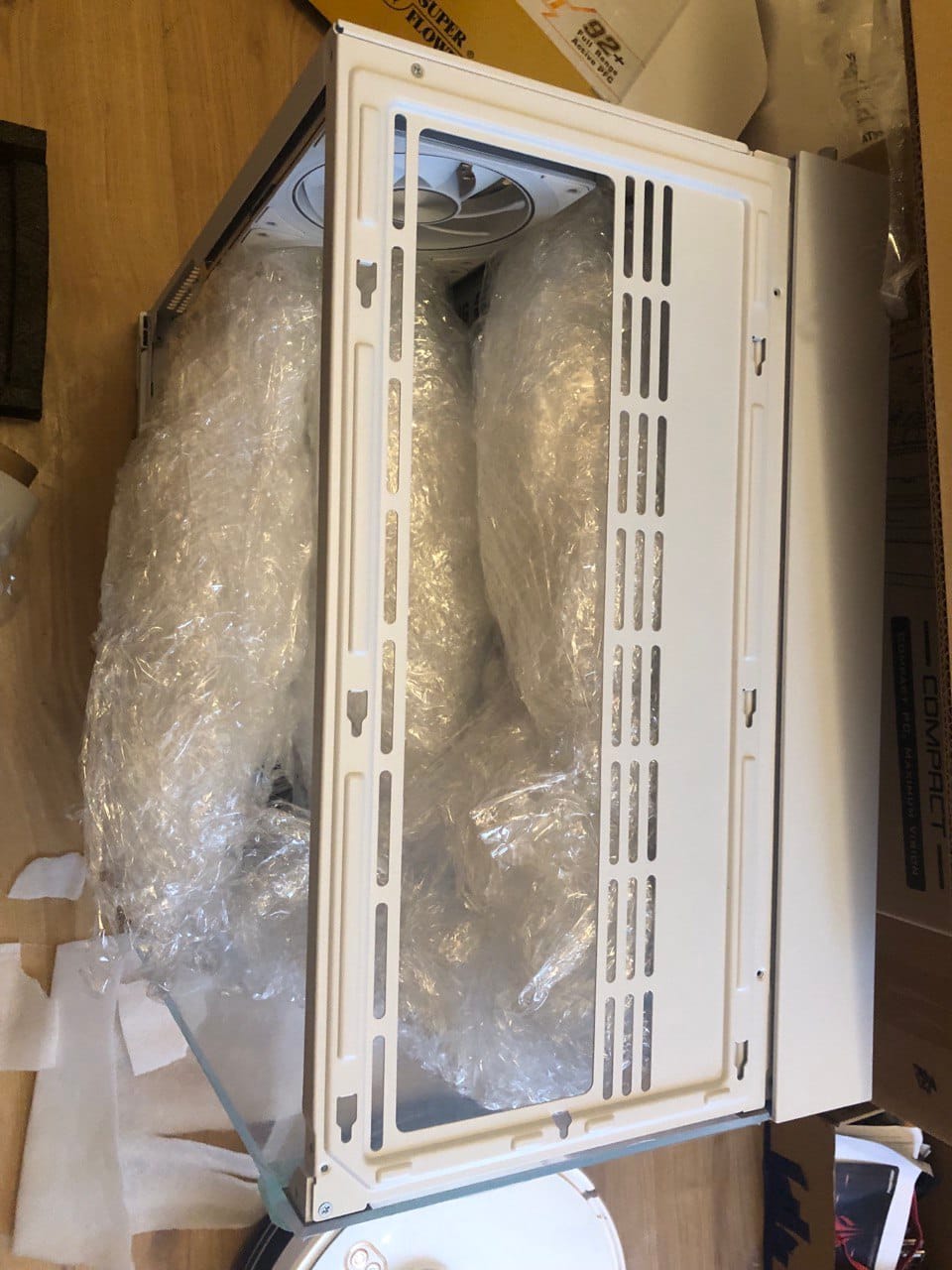 Это был мой первый опыт отправки сборки в Мск. К вопросу упаковки подошел серьезно: заполнил внутреннее пространство , чтобы тяжелая видеокарта и СЖО не пострадали при тряске, и упаковал все в несколько слоев защиты. В итоге доехало «на ура», клиент получил систему в первозданном виде.